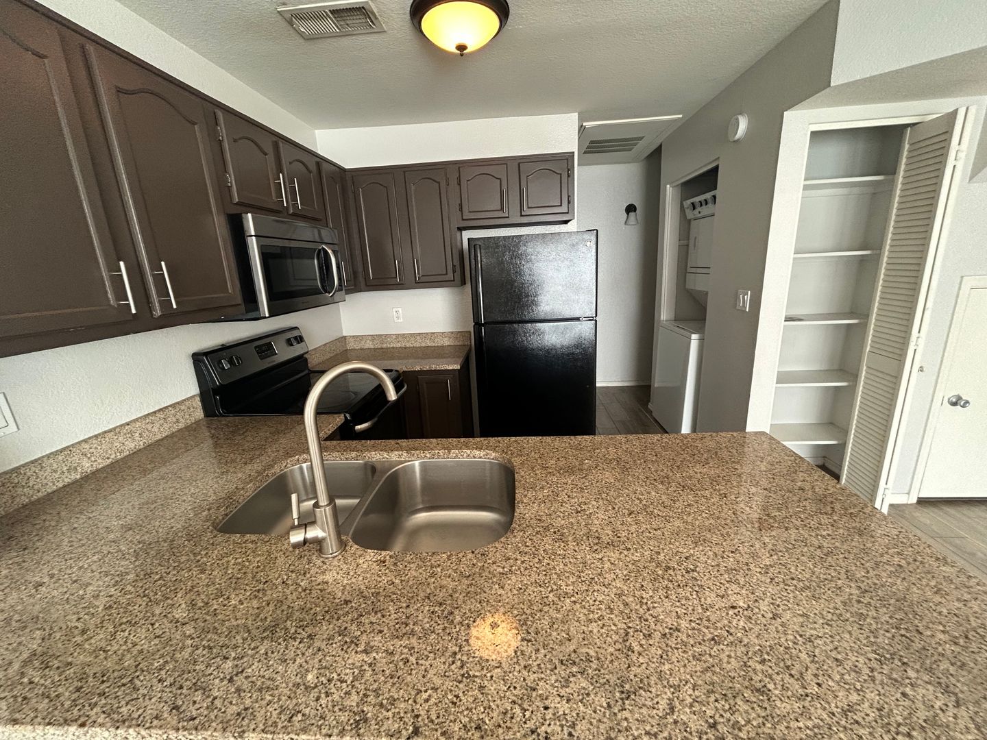 A beautiful 2 bedroom and 2 bathroom townhome. The kitchen has a stunning look to it with granite, dark cabinets, refrigerator, dishwasher, stove and more. A dedicated area for a dinning table with an open concept to the living area. The bedrooms are both spacious with the primary having its own bathroom attached. Plus, there is washer and dryer in unit. The community boasts an amazing pool and spa! Make this your place today.