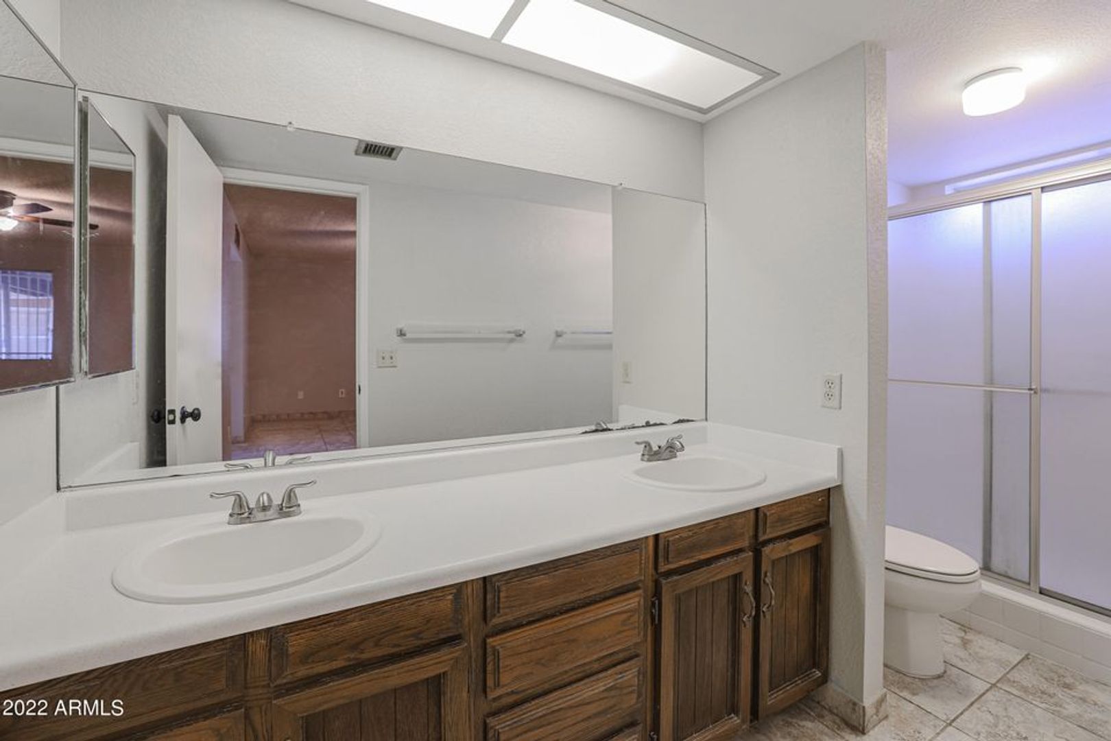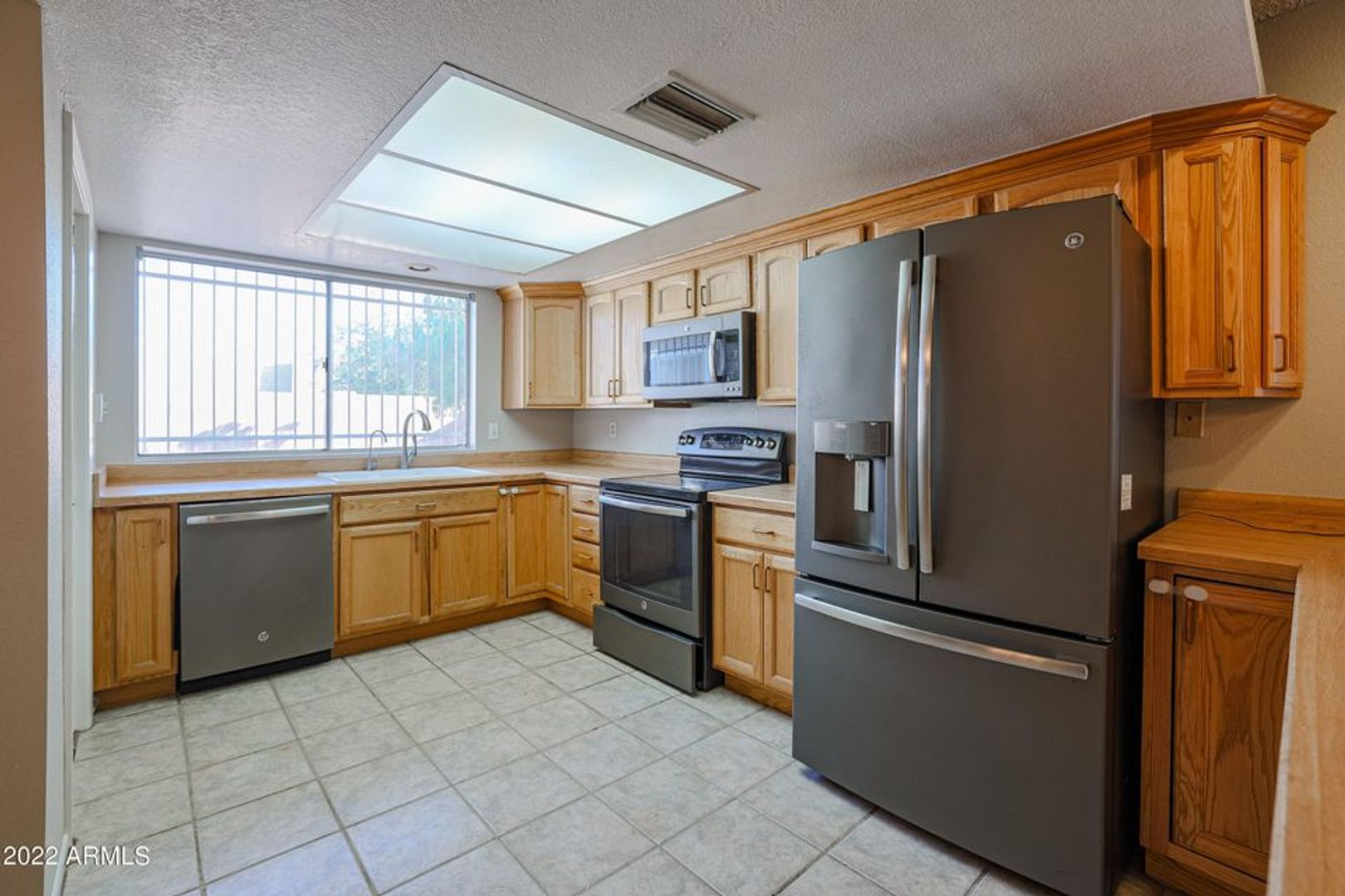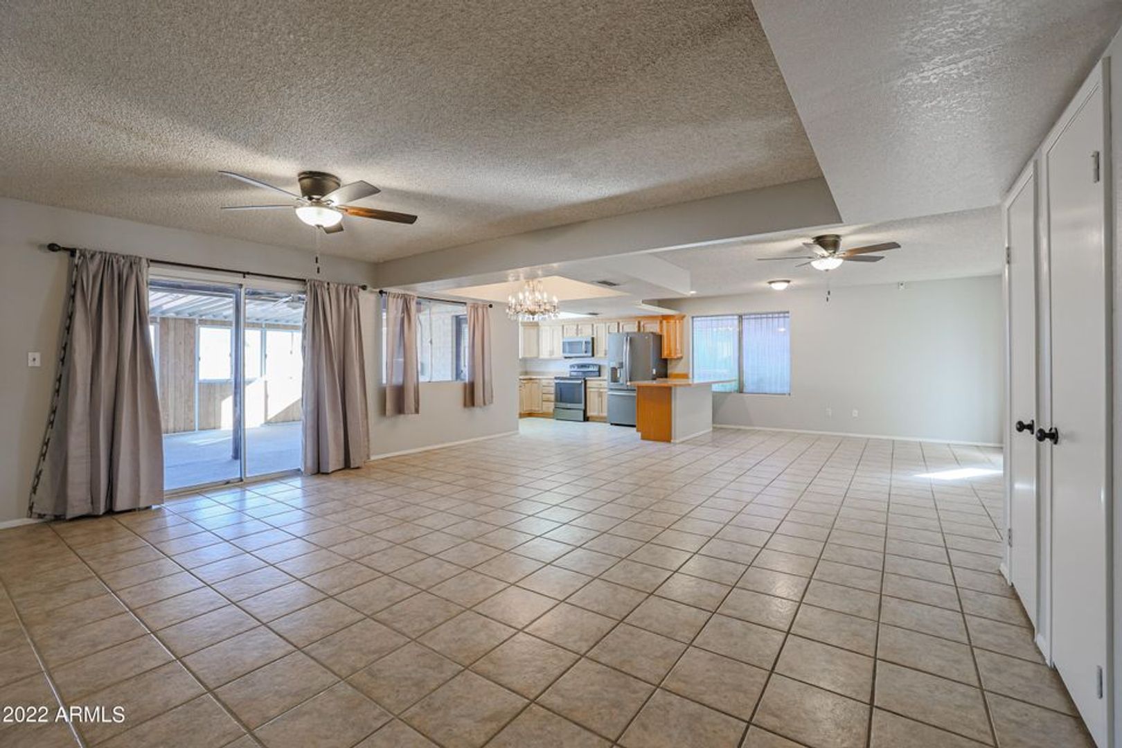 Make this house your home! 3 Beds + 2 Baths, tile and laminate flooring throughout ! Kitchen has stainless steel appliances, with upgraded cabinets and breakfast bar. SPACIOUS open floor plan. Master suite has dual sinks and walk-in closet with built-in shelving. Two-car garage with cabinets. HUGE enclosed patio aka ''Arizona'' room. Easy to maintain and mature landscaping. Come take a look!