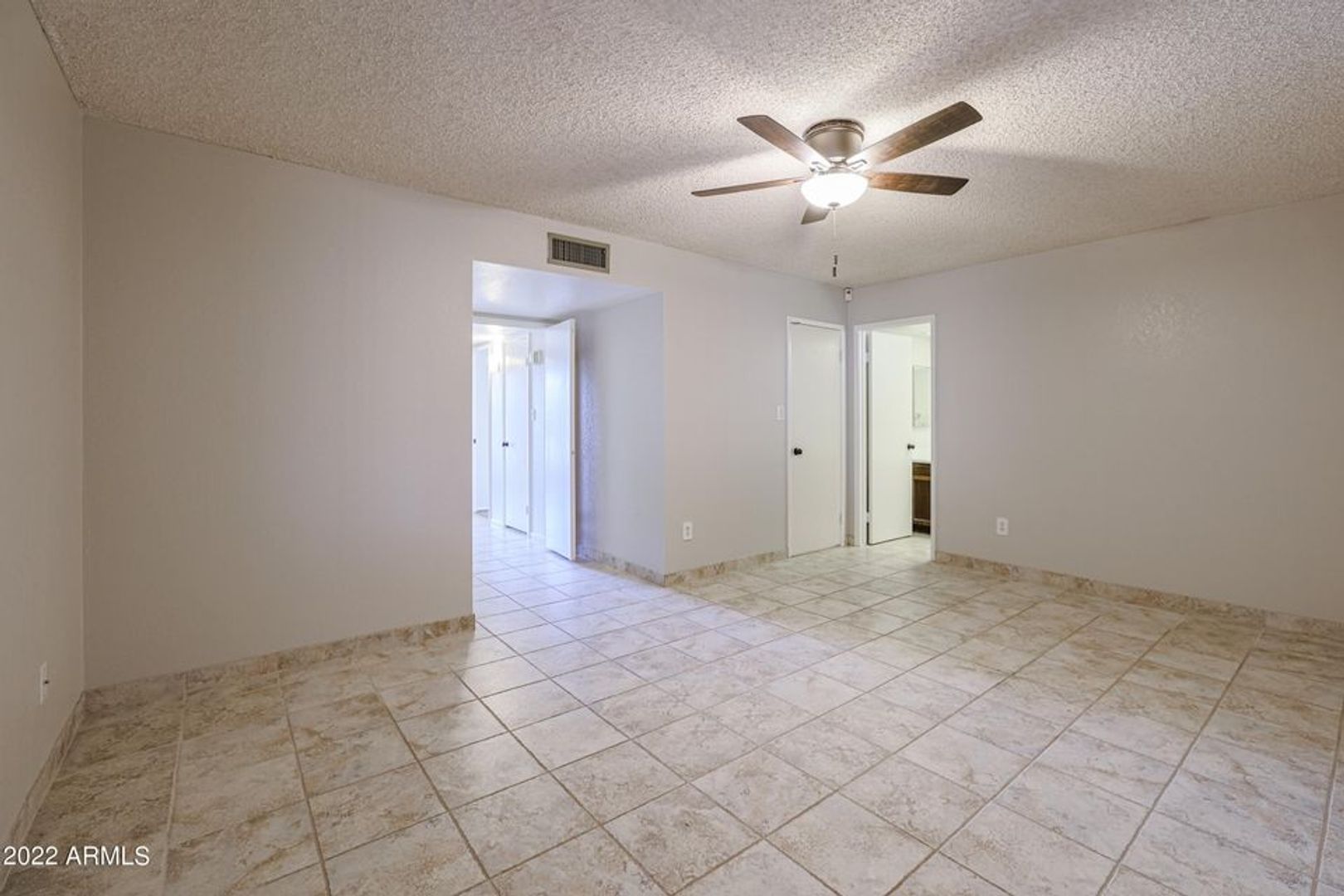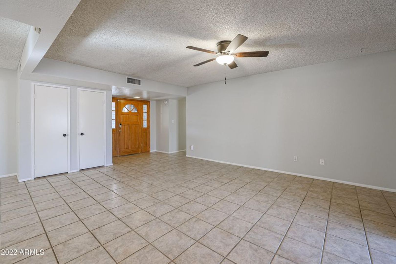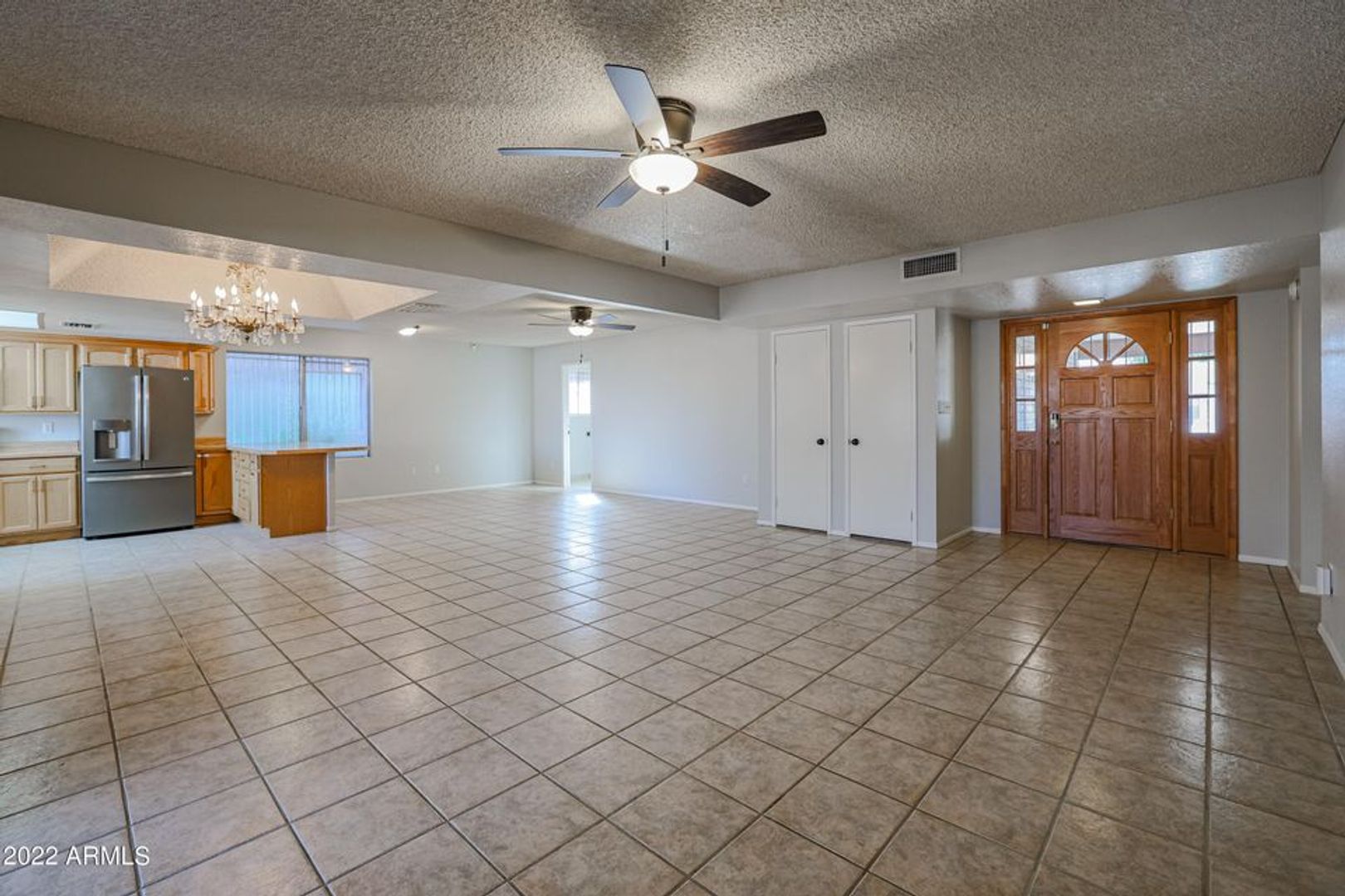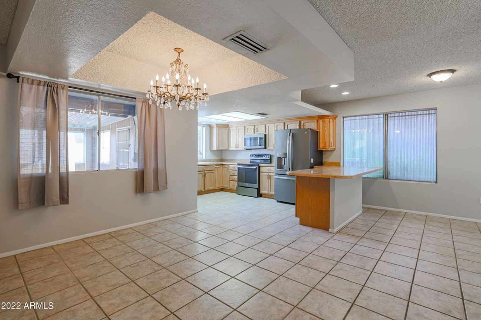 Make this house your home! 3 Beds + 2 Baths, tile and laminate flooring throughout ! Kitchen has stainless steel appliances, with upgraded cabinets and breakfast bar. SPACIOUS open floor plan. Master suite has dual sinks and walk-in closet with built-in shelving. Two-car garage with cabinets. HUGE enclosed patio aka ''Arizona'' room. Easy to maintain and mature landscaping. Come take a look!